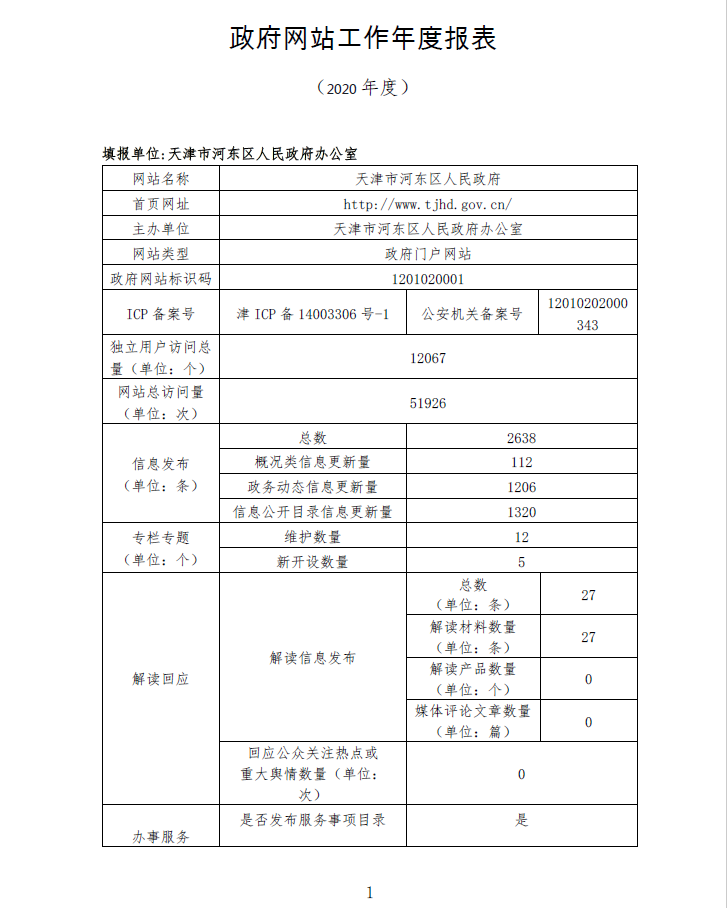 河东政务网2020年度政府网站工作年度报表